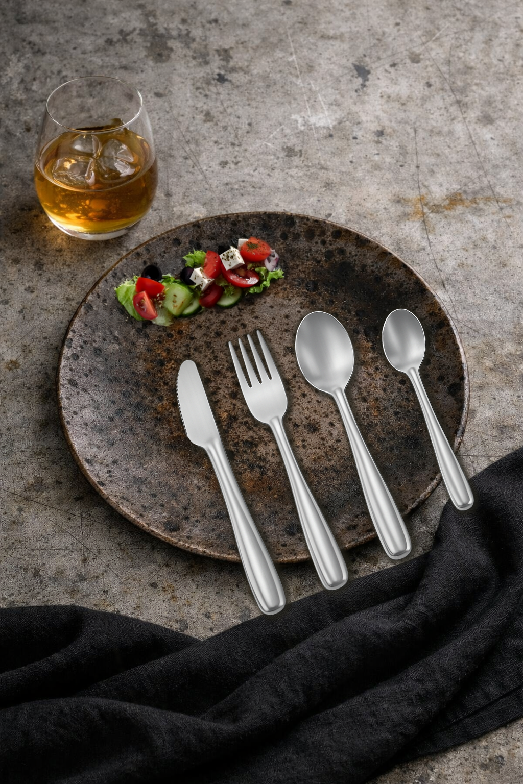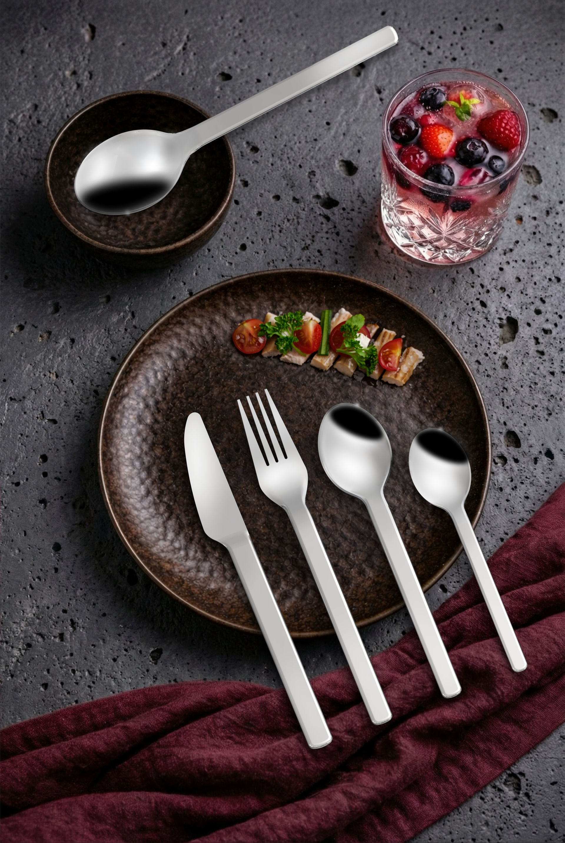 The Lilly cutlery set combines smooth contours with a modern profile, offering an elegant yet approachable design that delivers comfort, durability, and everyday style.